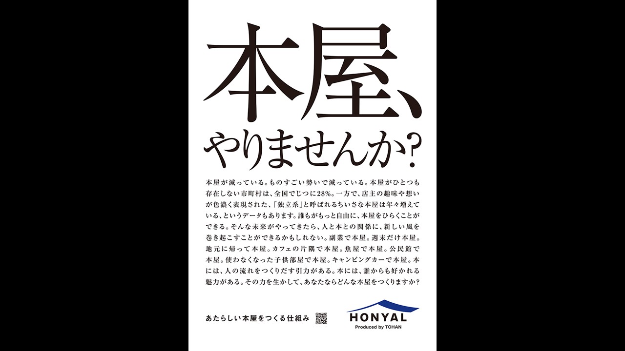 町の本屋が減り、あるいは均質化が進む中で、本と町のあいだに新しい関係を育てる試み、HONYAL。流通の仕組みをリデザインし、本にスモール・ビジネスの自己表現手段という新しい価値をも与えています。大手出版取次会社であるトーハンが取り組んでいることにも大きな意義を感じます。町のあらゆる場所で本が売られている、そんな未来が実現するまで、挑戦を続けてください。